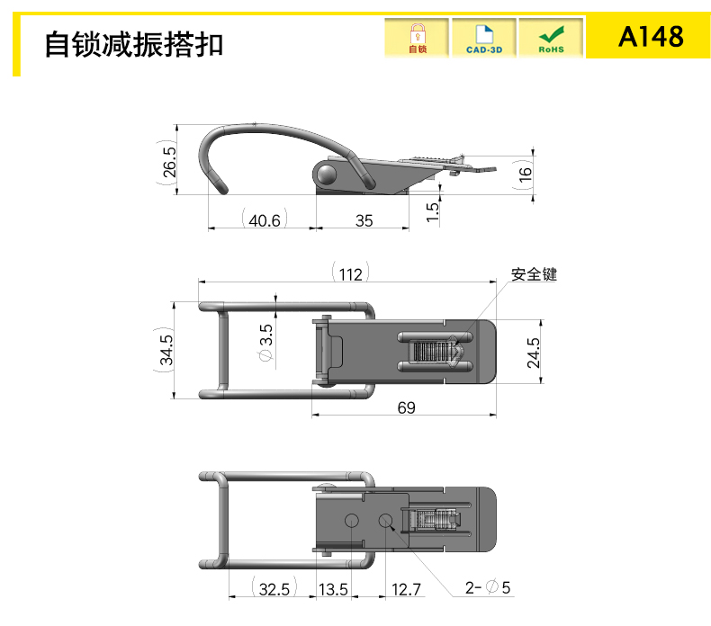 弧形弹簧钢线使搭扣具有弹性预压力,并具有减振功能